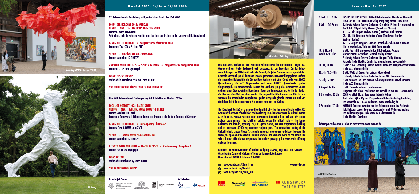 The comprehensive exhibition catalogue, available in both German and English, will be released at the opening of NordArt 2026.